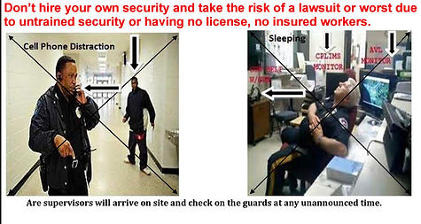 Gated Communities, Residential Complexes Corporate Buildings, Banks, Day cares, Colleges, Universities, Car lots, High, Schools, Government, Hotel Security, Large and small Condo's, Sky rises, Manufacturing, Industrial, Loss Prevention,